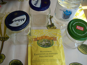 Helteestà huolimatta aloitin eilen jouluvalmistelut. Lasipurkkeja, etikkaa ja mausteseosta sàilòntààn.
